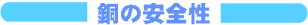 団塊の世代までは「銅は毒だ」と教えられてきました。しかし、厚生省が国立衛生試験所などに委託し、昭和56年〜58年12月まで動物実験研究を行い、銅のサビ「緑青」は害が極めて少ない物質であるとわかりました。東京大学医学部でも昭和37年と49年に同様な実験が行われ、害のないことがわかり、日本衛生学会で発表されました。